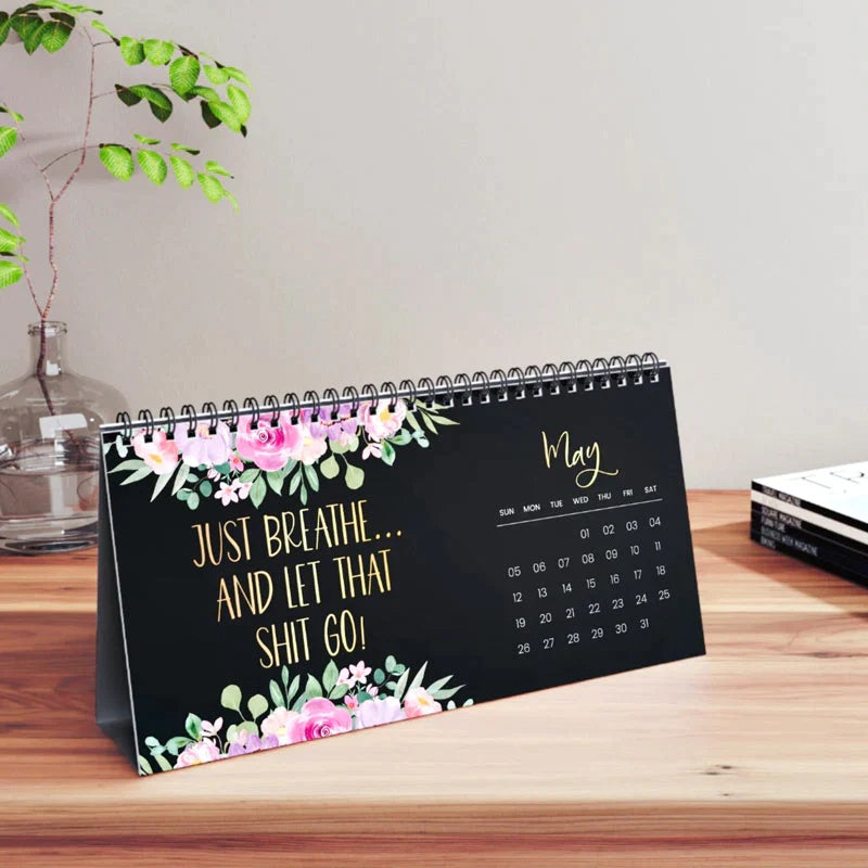 This cuss word 2024 Wall Hanging Calendar features TWO funny cuss word quotes per month for the year of 2024. This hanging wall calendar features a hook to hang on the wall, is vertical and sized 11" x 8.5".