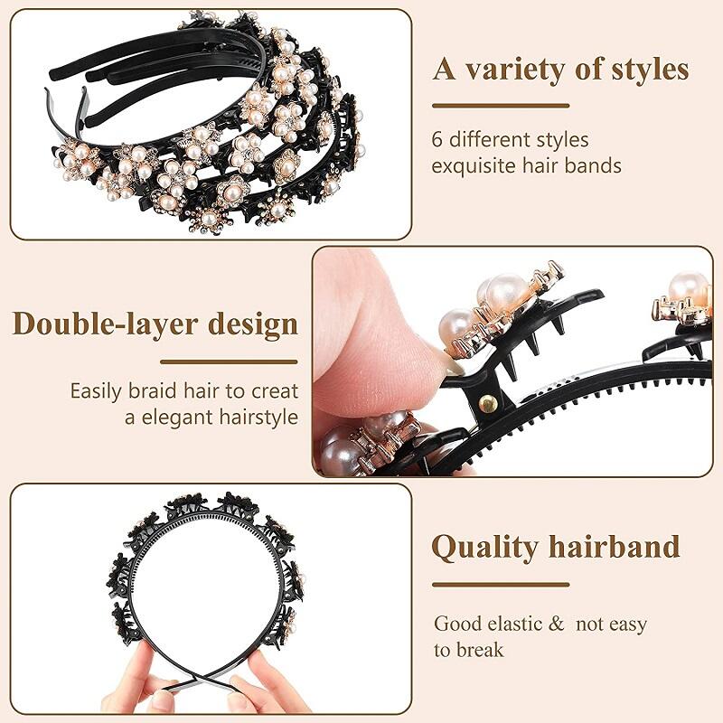 Headbands and hair clips are designed with convex teeth, with 8 clips on the head. Double-layer fixed hair, the upper layer can be braided in the bangs, and the lower layer can hold the hair. Easily create charming hairstyles.