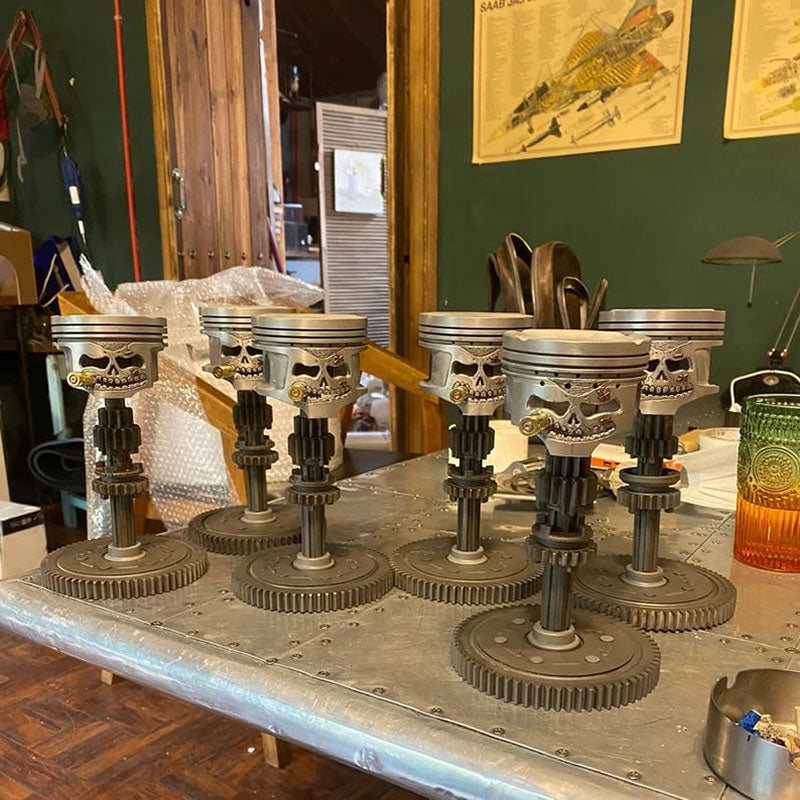 Handcrafted piston skull sculptures, each one unique. Would make a perfect keepsake and collector's item.