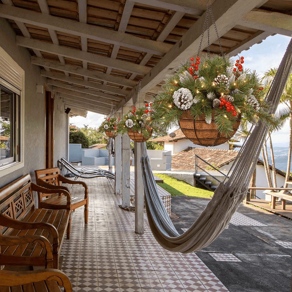 - FESTIVE APPEAL: A delightful way to add instant Christmas spirit to any indoor or outdoor space. With 84 individually crafted branch tips, this hanging Christmas plant is as charming as the real thing.
